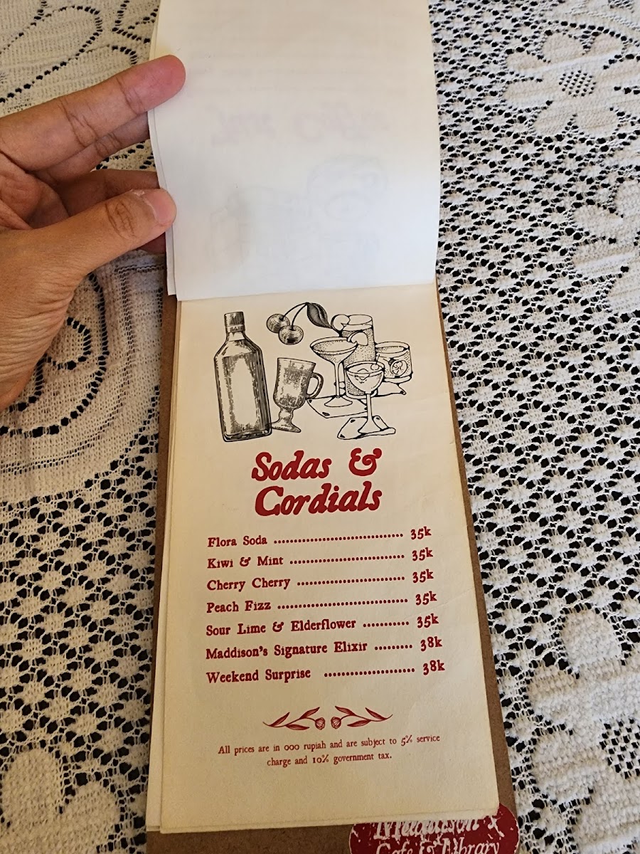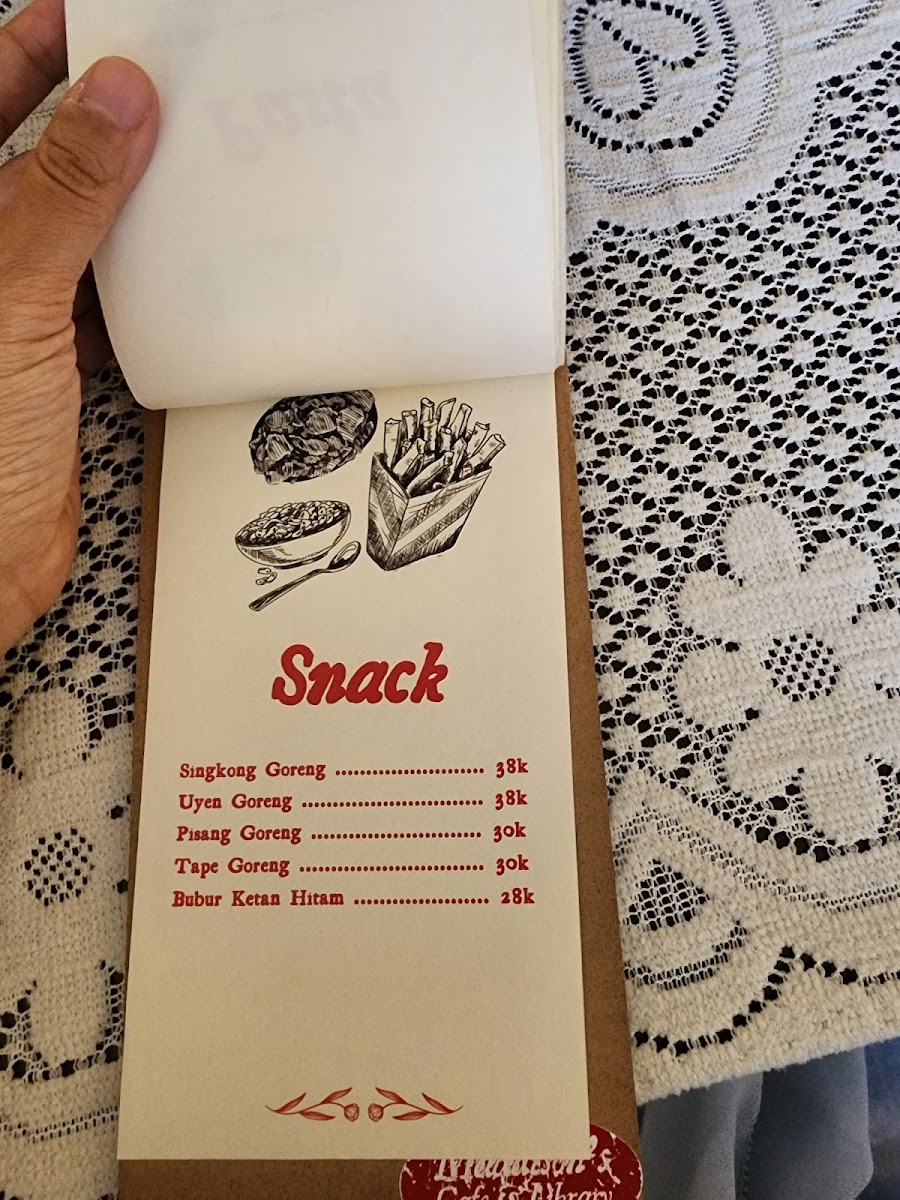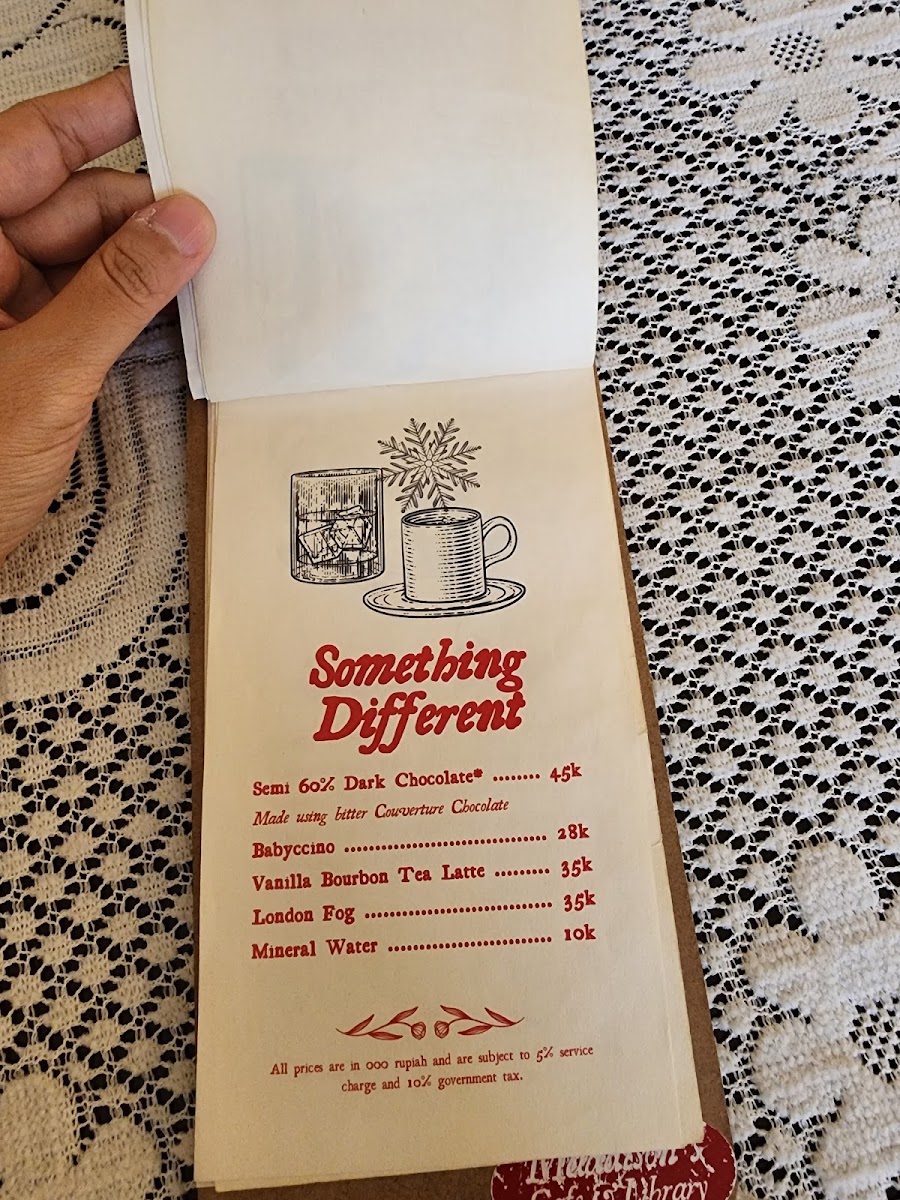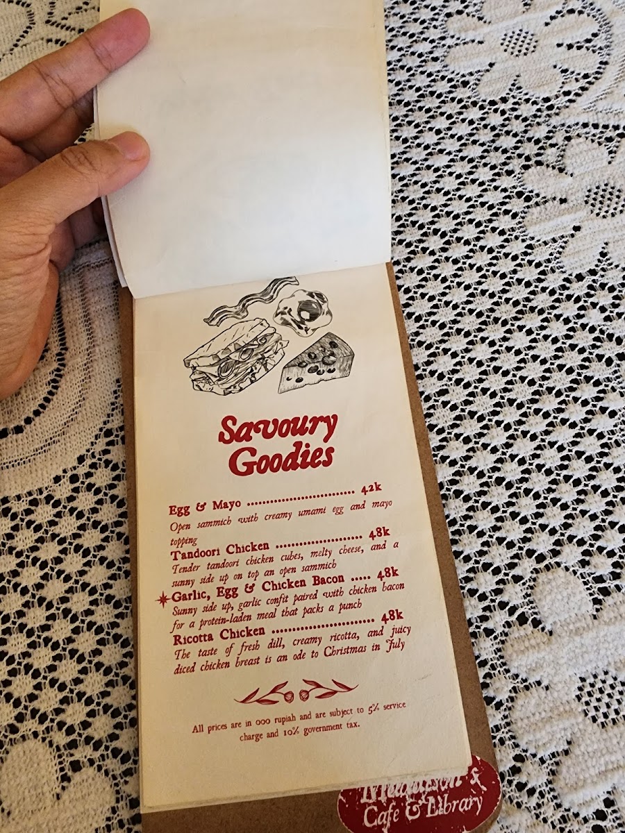 The menu is designed for casual dining, with options suitable for individuals seeking a quick drink or a light meal in a relaxed setting.